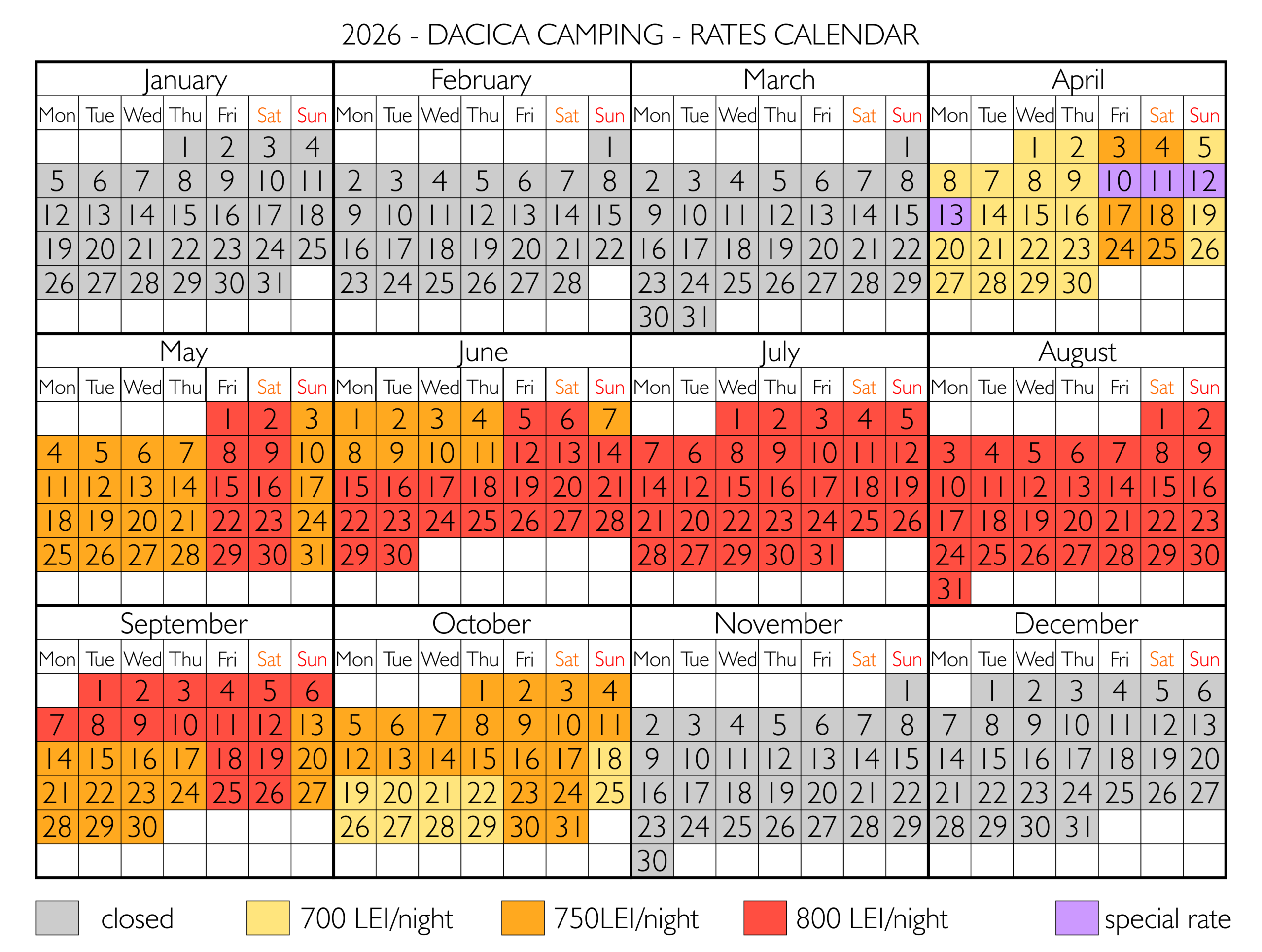 | Trailer or camper van with connection to electricity | 120 lei / night |